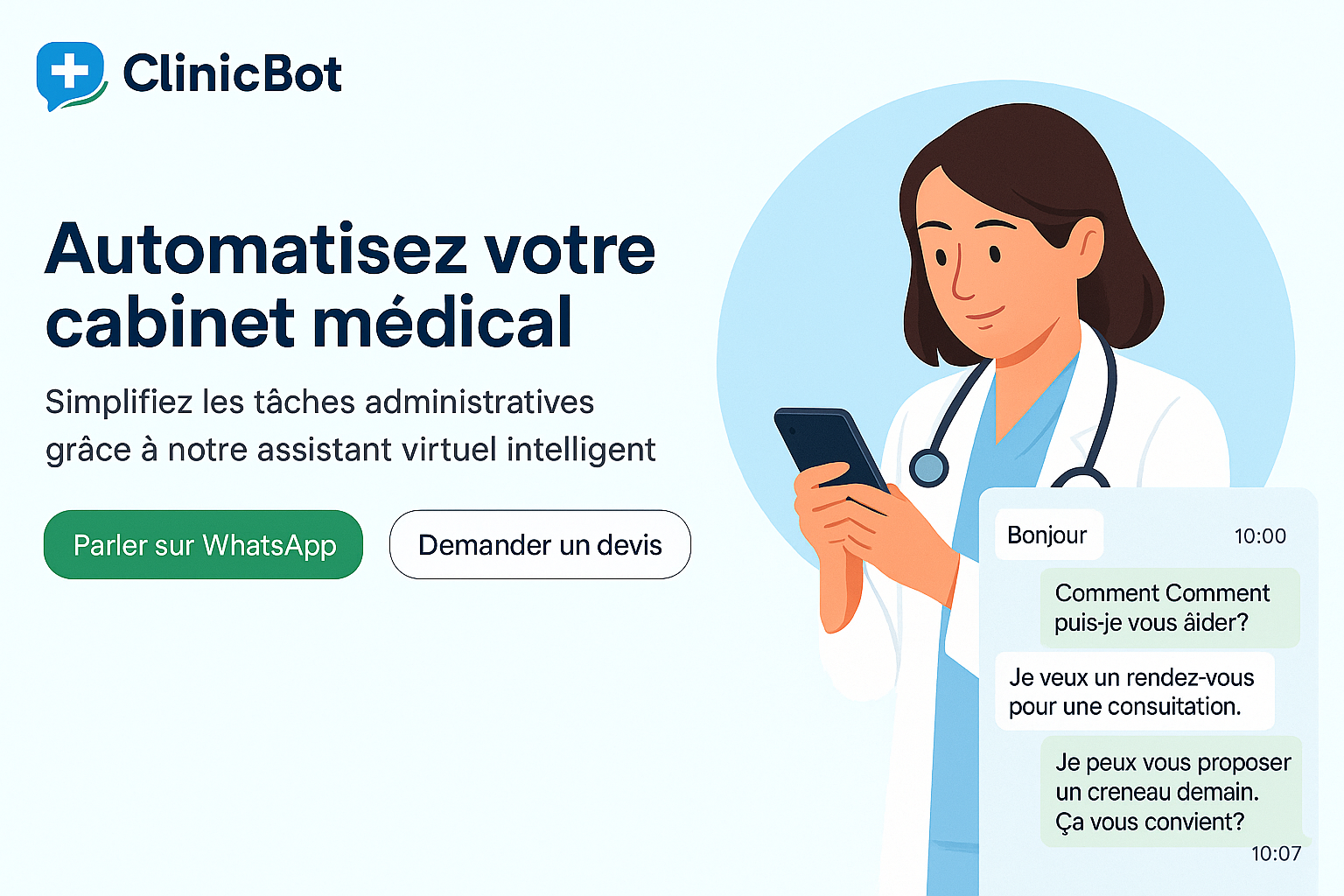 ClinicBot répond instantanément, fixe des rendez-vous et réduit les appels manqués — sans changer vos habitudes.